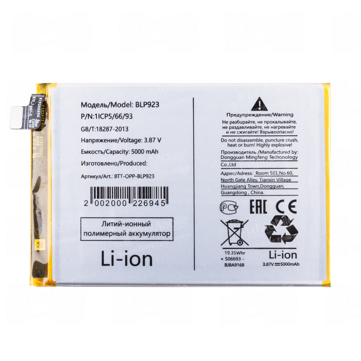 Аккумулятораная батарея для OPPO A57s BLP923
