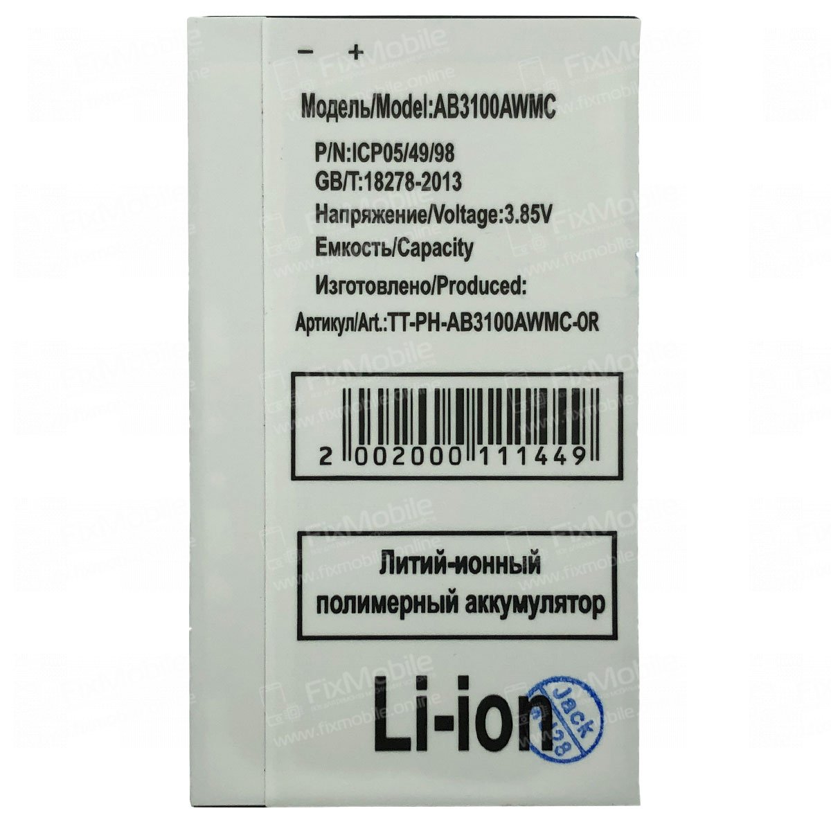 - Тип товара:Аккумулятор